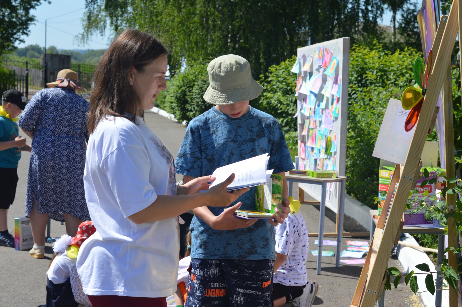 Литературная зона: Викторины, стихи, чтение произведений местной литературы, выставка книг.