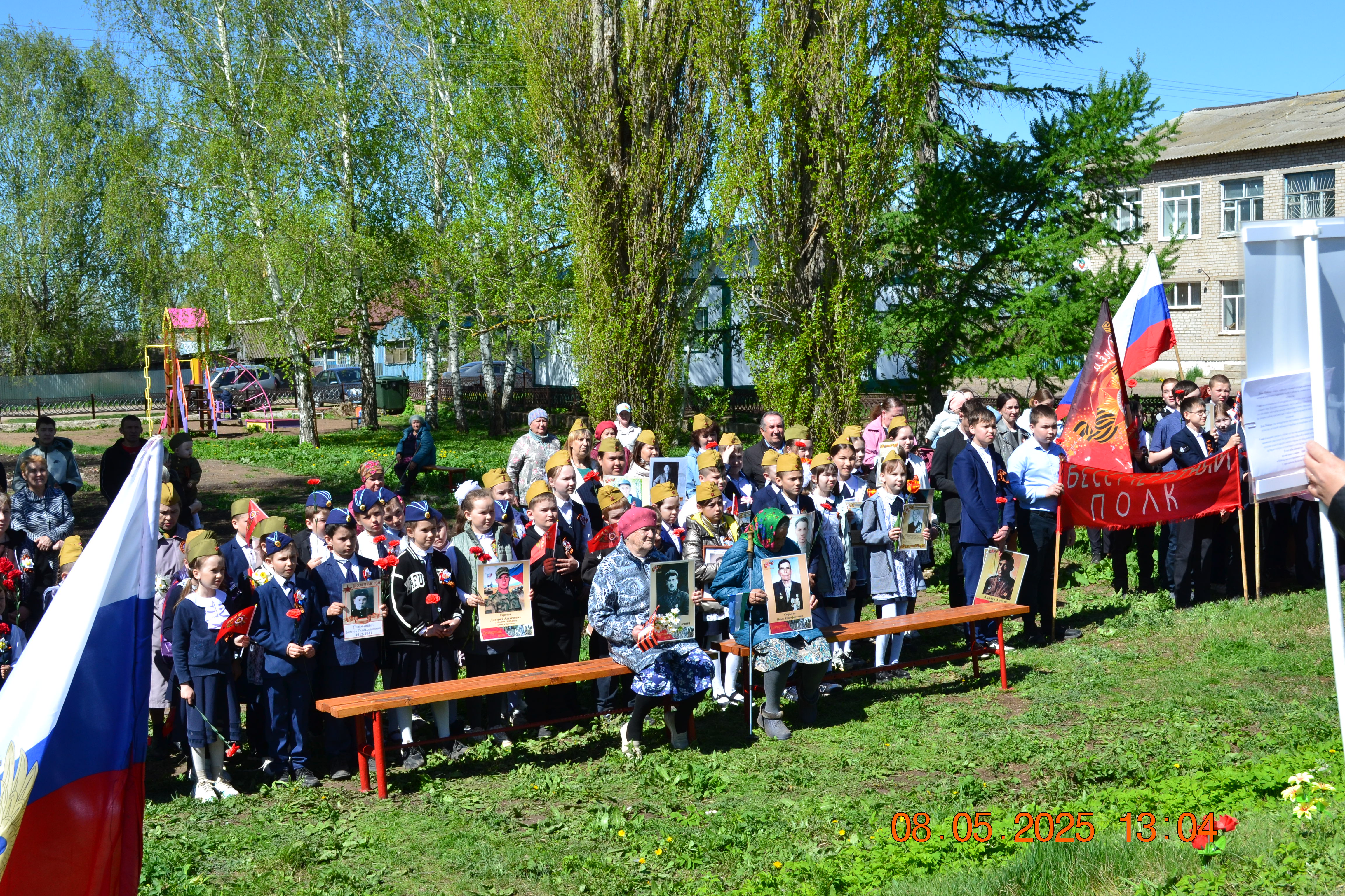 Прозвучали слова благодарности от главы администрации сельского поселения Бахтыбаевский сельский совет Байрамова Р.Р., директора МБОУ СОШ Бикбаувой С.В. всем, кто ковал победу на фронте и в тылу и тем ребятам героям что сейчас в наше время проявляют мужество, стойкость и героизм, достойные памяти ветеранов Великой Отечественной. Они защищают не только территориальную целостность страны, но и ее ценности, культуру, право на суверенное развитие.Минутой молчания почтили память павших, отдавших свои жизни за свободу и независимость Родины. В глазах многих собравшихся стояли слезы – слезы скорби и гордости за подвиг героев.