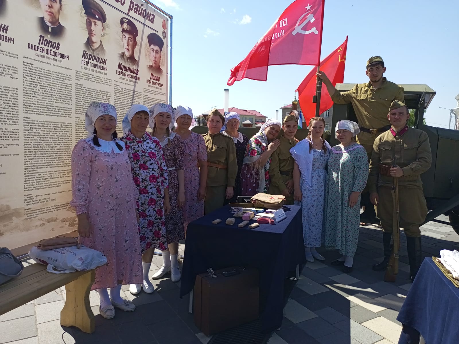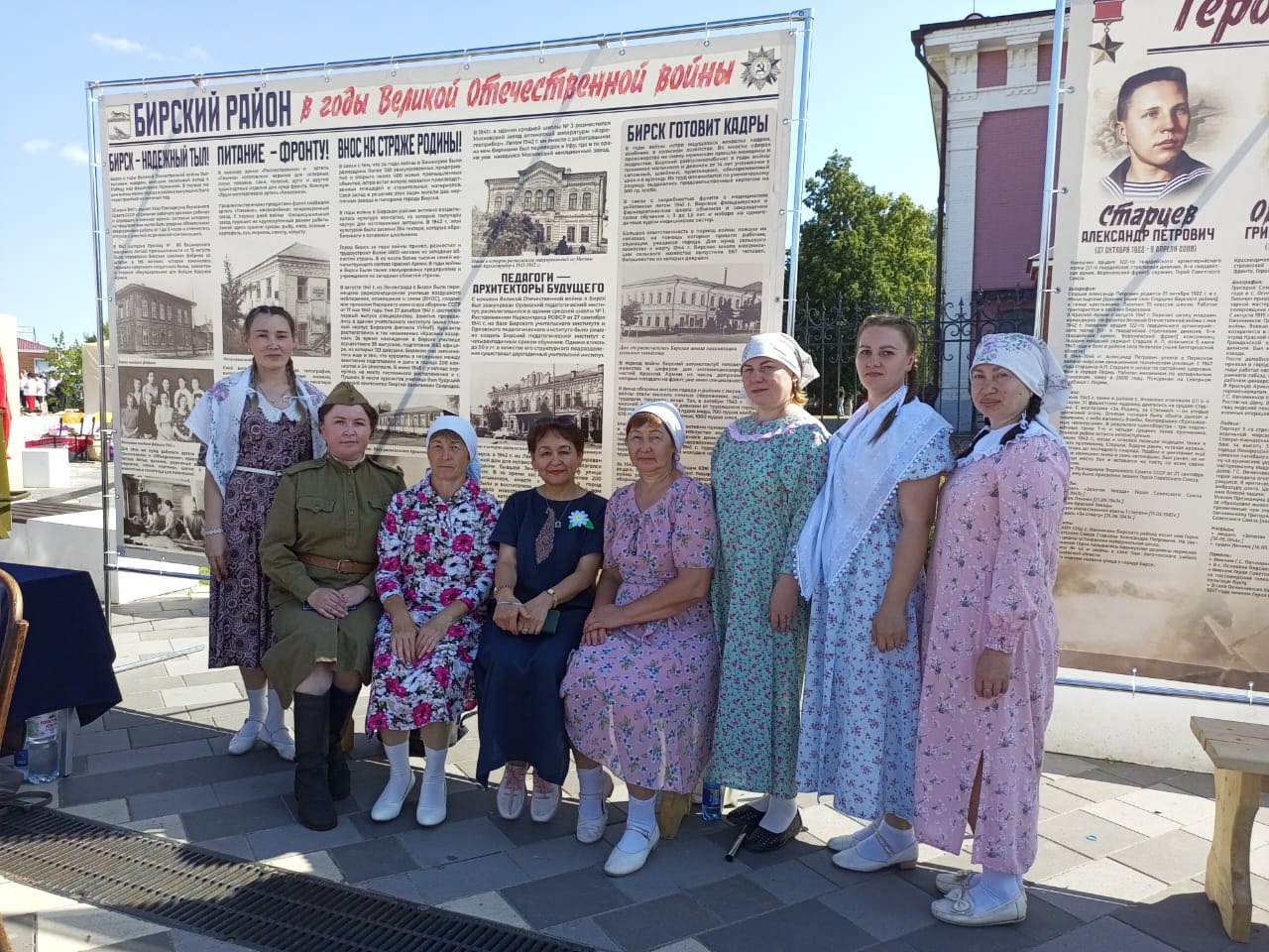 На фестивале гости могли увидеть национальные подворья, где проходили небольшие театрализованные представления. Наша библиотечная система тоже приняла участие в постановке «Бирск в годы ВОВ», которая была частью фестиваля.